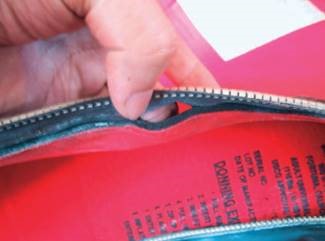 - Check the zipper by sliding it up and down to check for ease of operation. Using lubricant recommended by the manufacturer, lubricate the front and back of the zipper and the slide fastener. If the zipper is not functional, the suit should be removed from service and discarded or returned to the manufacturer or a suitable repair station.