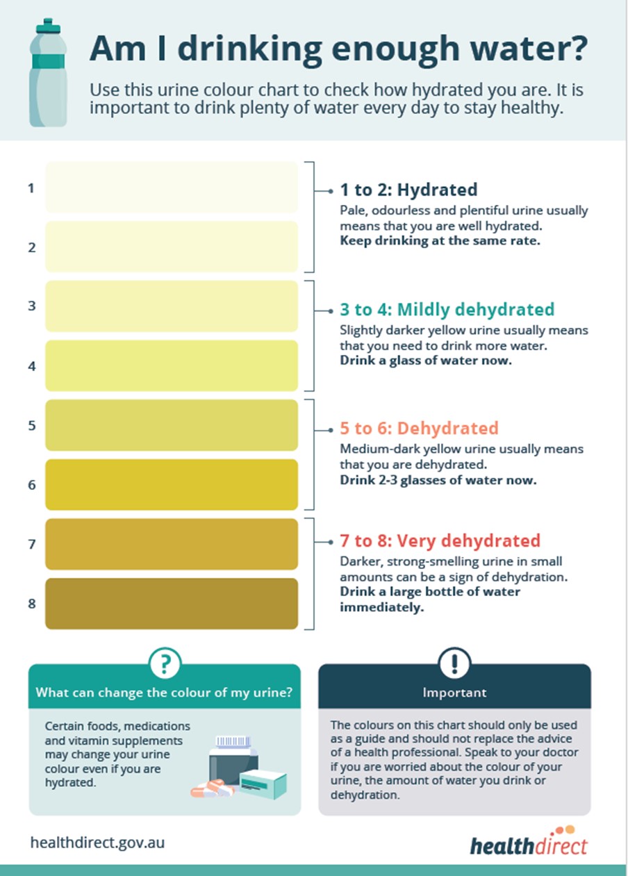 - Decreased urination (see the Urine Colour chart)