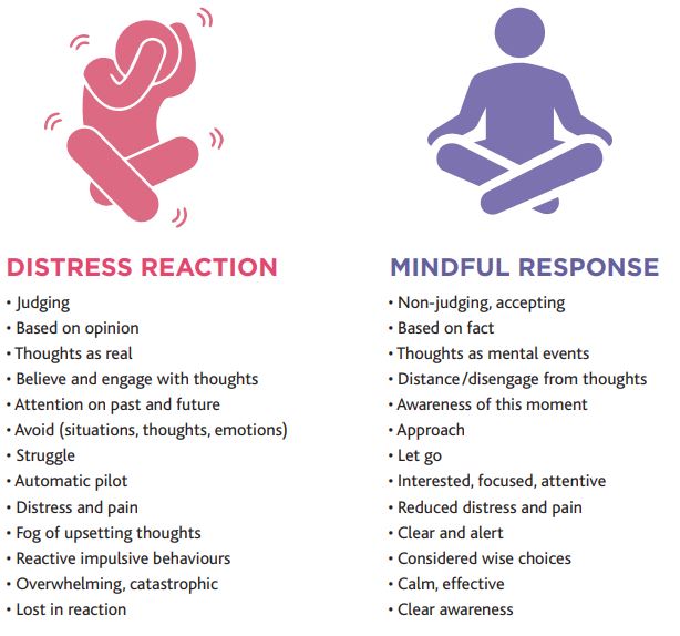 Mindfulness is an ancient Buddhist practice which is very relevant for life today. It is a very simple concept. Mindfulness means paying attention in a particular way: on purpose, in the present moment, and non-judgementally. This increases awareness, clarity and acceptance of our present-moment reality. Mindfulness does not conflict with any beliefs or tradition, religious, cultural or scientific. It is simply a practical way to notice thoughts, physical sensations, sights, sounds, smells – anything we might not normally notice. The actual skills might be simple, but because it is so different to how our minds normally behave, it takes a lot of practice. Being mindful helps us to train our attention. Our minds wander about 50% of the time, but every time we practise being mindful, we are exercising our attention “muscle” and becoming mentally fitter.We can take more control over our focus of attention instead of passively allowing our attention to be dominated by distressing thoughts. Mindfulness might simply be described as choosing and learning to control our focus of attention, and being open, curious and flexible.