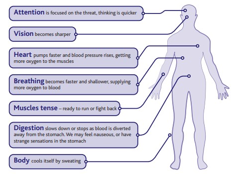 Our body is designed to protect us from threat or danger. For example when we hear the words ‘Look Out’, our body reacts as follows: