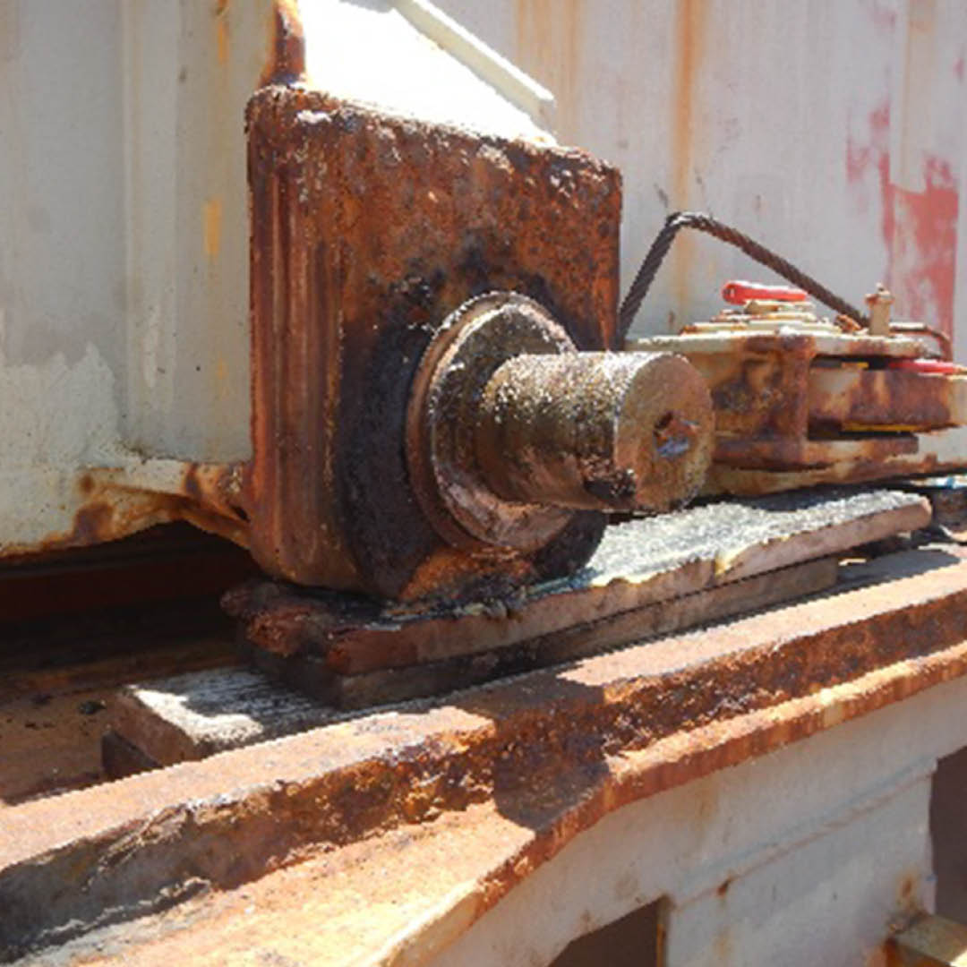Hatch cover missing roller / Image Credit: AMSA Watertight Weathertight campaign March 2023