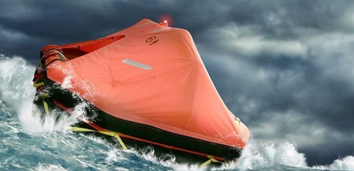 Life-rafts in general are collapsible, stored in a heavy-duty fiberglass canister, which contains compressed air to allow automatic inflation.