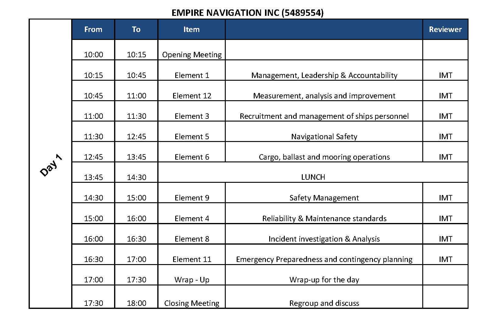 See below indicative time schedule of this remote audit. To facilitate the audit three different meeting rooms were utilized ensuring social distancing is maintained and no room is crowded.