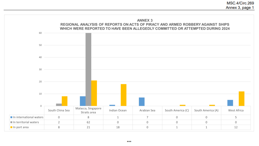 The International Maritime Organization (IMO) has published its Annual Report on acts of piracy and armed robbery against ships for 2024, noting a decrease in incidents compared to 2023.
