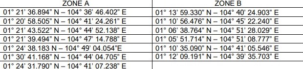 The Indonesian authorities has released the following designated anchorage area for Tanjung Berakit to mitigate confusion on the anchorage areas: