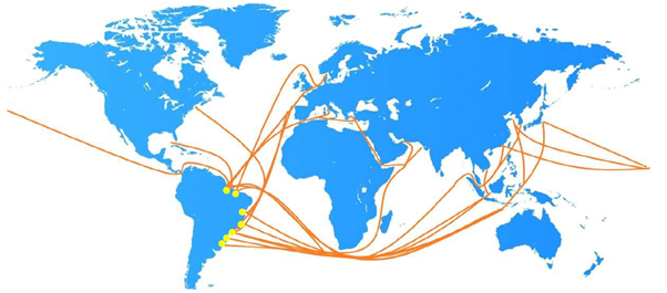 Brazilian soya bean export main routes (no scale) Courtesy Proinde Practical Guidance