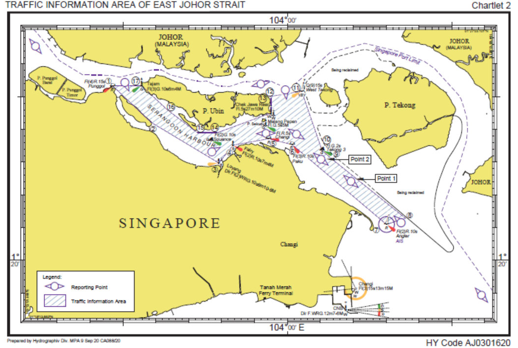 - Every vessel shall make the following report to and obtain clearance from Sembawang Control before entering or maneuvering within or leaving the East Johor Strait. The report shall contain the following information: