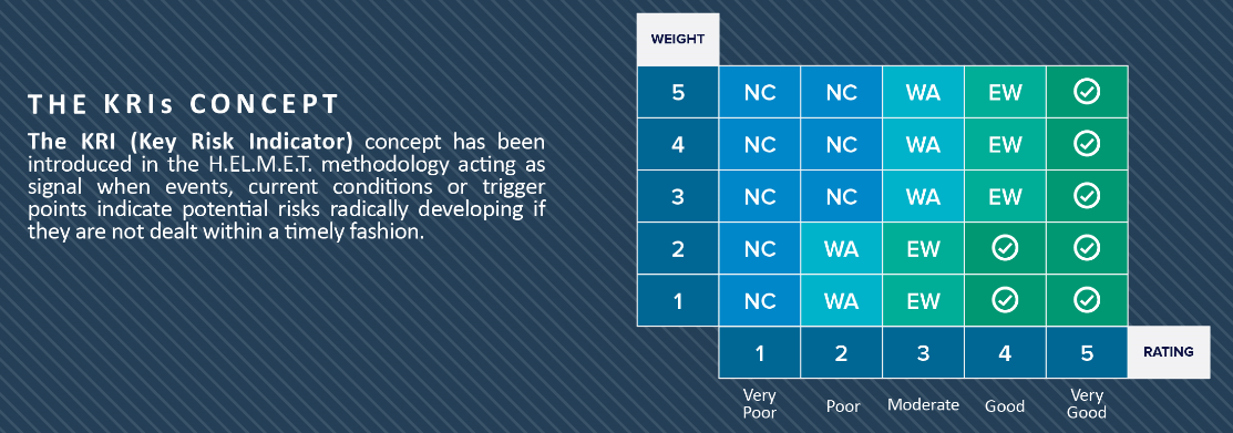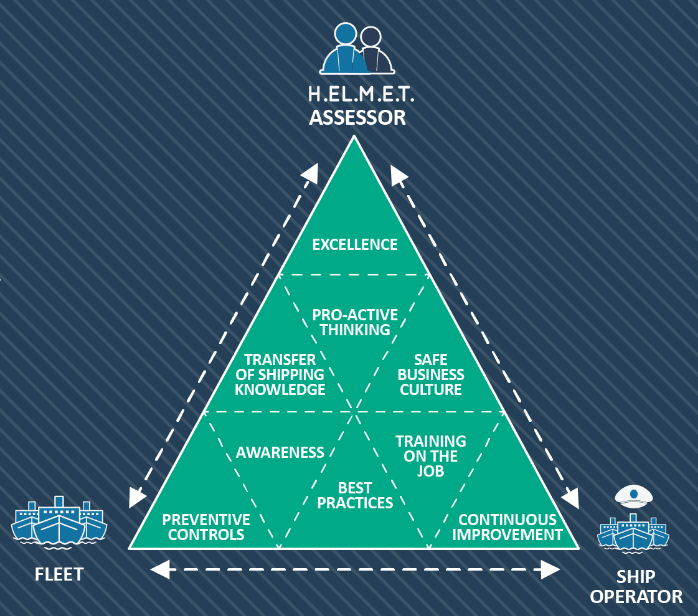 H.EL.M.E.T. involves a rating scheme and is based on a triangular proactive methodology revolving around a drill-down approach and a universal list of elements suitable for fleet and onshore human-centric risk assessment. It introduces Key Risk Indicators (KRIs), a new risk detection approach based on expert experience and input, best practices, and analysis of past data that complement the industry’s well known KPIs.