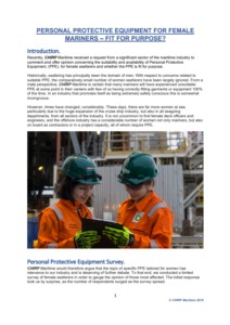 To read more about the survey please copy and paste the following path on your internet browser: https://www.chirpmaritime.org/wp-content/uploads/2019/11/20191119-PPE-for-female-mariners-Fit-for-Purpose-1.pdf