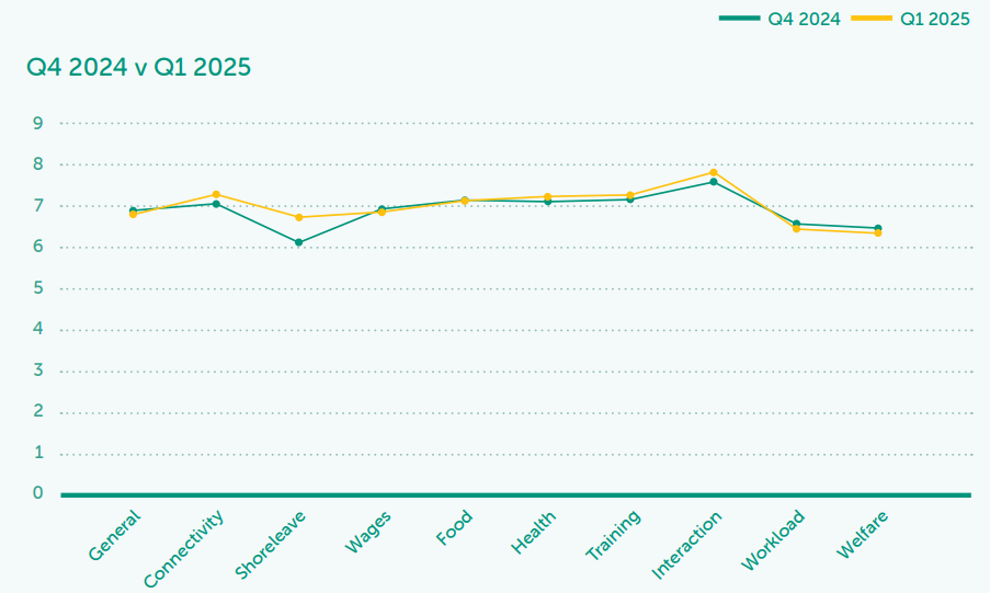The Mission to Seafarers’ latest edition of its quarterly Seafarers Happiness Index has revealed a steadying in seafarer satisfaction, marking a small rise to 6.98 out of 10, up from 6.91 in Q4 2024.