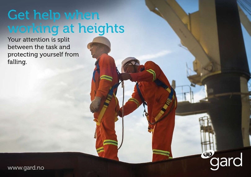 It takes most people about 1/3rd of a second to become aware of a fall, and a further 1/3rd of a second for the body to react, in which time a person can fall up to 7 feet or 2.1 meters according to the US Occupational Safety and Health Administration’s (OSHA) Fall Hazard Recognition, Prevention & Control publication. The consequences of falling from a height can be permanent disability and in some cases even fatal. The Gard P&I claims database for the last 10 years shows that 5% of all falls from heights have resulted in fatalities and is one of the top 5 leading causes for fatalities onboard. The number of fall from height incidents involving ratings are double that involving officers.