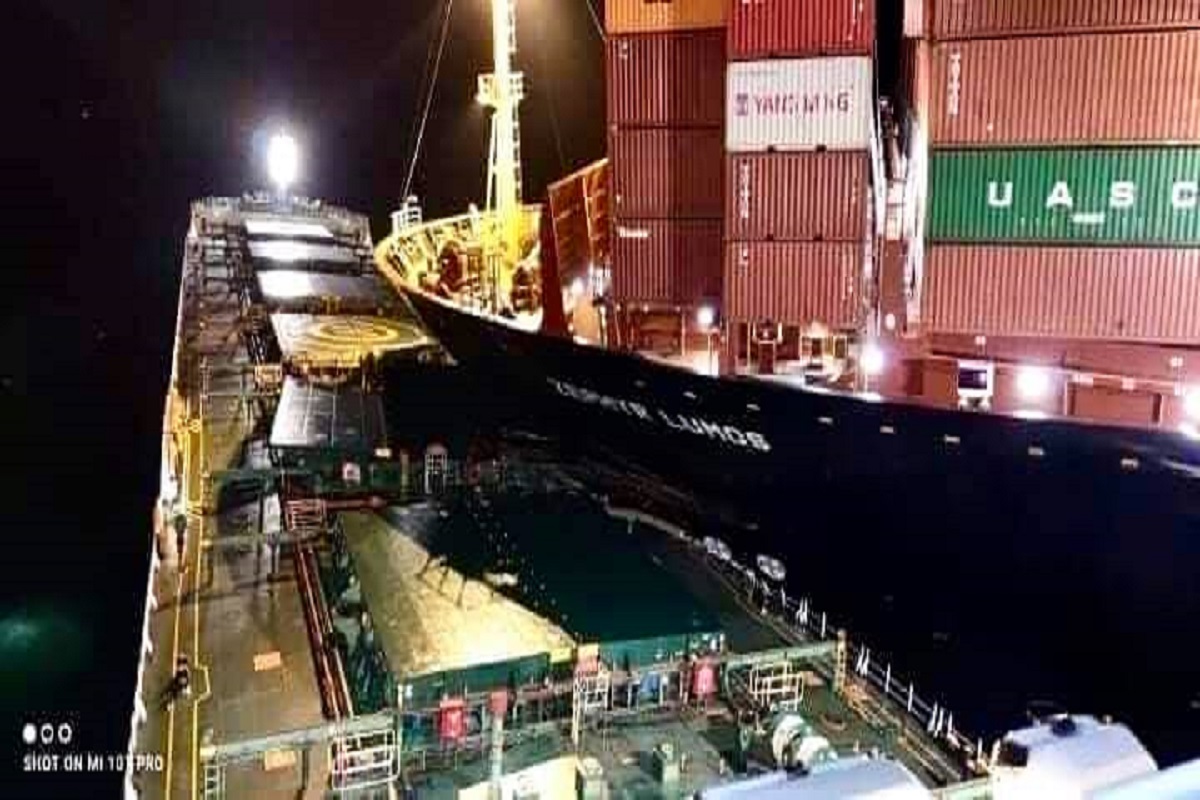 A containership and a bulk carrier collided early Sunday in the Strait of Malacca, causing major damage and resulting in an oil spill.