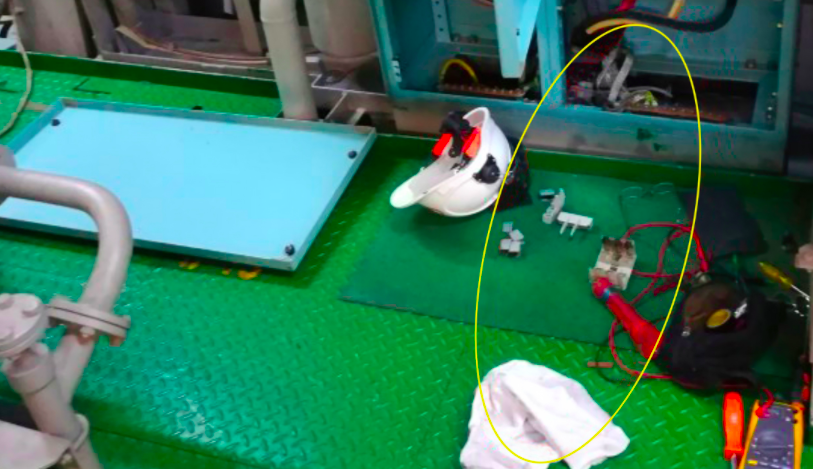 In addition, while the upper door had a warning sign about the 440V shock hazard, the lower panel cover had no such warning. A warning sign could have prevented the electrician from opening the cabinet without de-energizing the power. Following the incident, all high-voltage electrical panels installed on the ships managed by the company were inspected to ensure that adequate warning signs were put in place, and a sign was subsequently added to the cover of the lower panel involved in this incident.