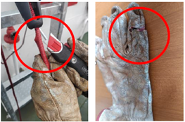 - Failure to wear mandatory PPE: The crew member was not wearing suitable hand gloves, which are essential to protect against sharp edges during manual tasks;