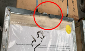 On the second incident, a crew member sustained a severe hand injury while manually adjusting a package with a damaged metal rim on a pallet. The sharp rim caused a deep cut near the thumb, requiring 12 stitches to stop the bleeding.