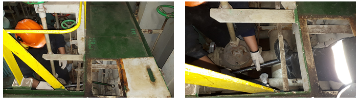 During rectification progress an extension was used by putting a spanner and additional weight in order to remove the frozen bolt and nut.