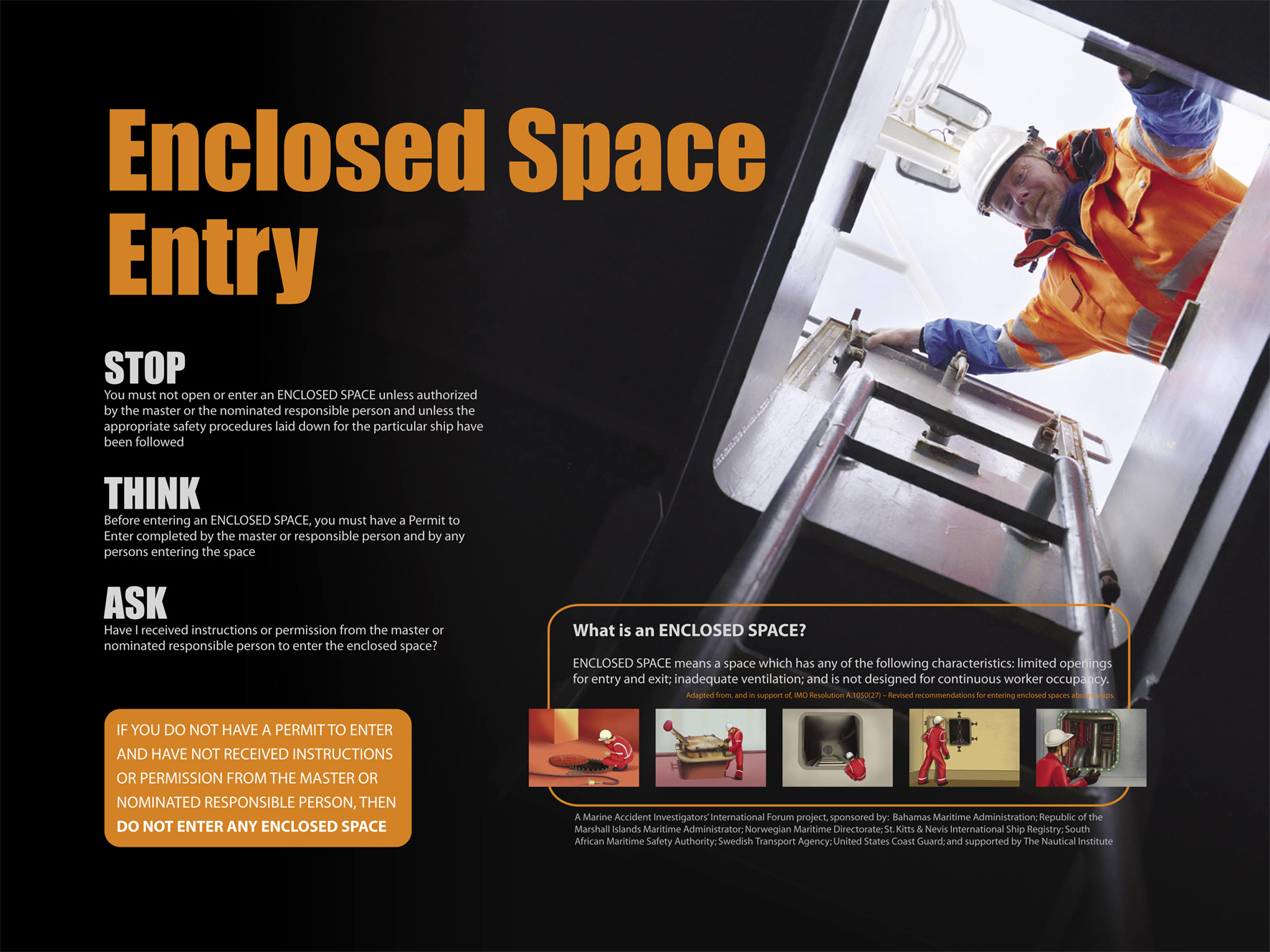 - who on-board is authorized to permit entry into an enclosed space; and
